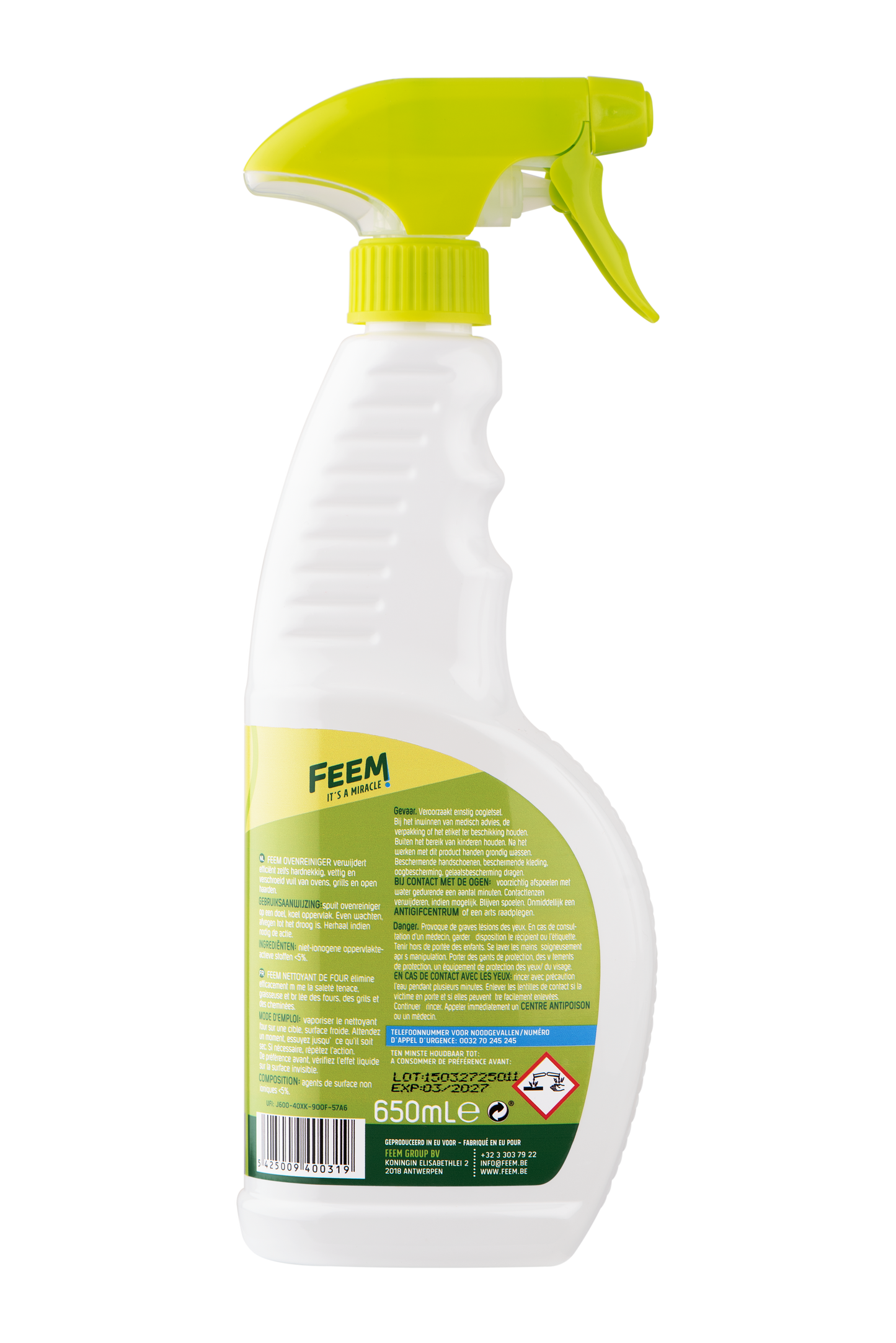FEEM Ovenreiniger is de ideale oplossing voor het grondig reinigen van ovens, grills, BBQ-grills, open haarden en het glas van houtkachels. Dit fantastische product verwijdert op efficiënte wijze zelfs het meest hardnekkige, vettige en verschroeide vuil. Met FEEM Ovenreiniger krijg je jouw apparaten weer stralend schoon, zonder gedoe. Ontdek de kracht van FEEM en geniet van een vlekkeloos resultaat, elke keer opnieuw.